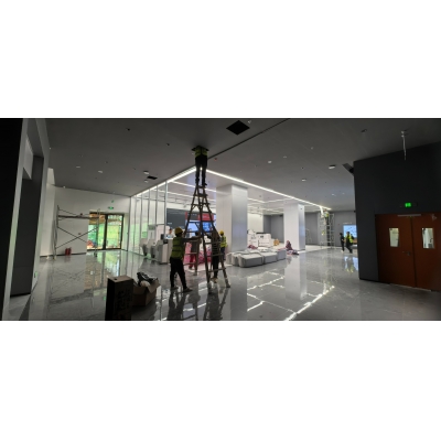 光峰科技新大樓4樓的企業(yè)展廳,采用了我司的LONGCHUNG智慧導(dǎo)覽系統(tǒng),整館劃分了10個(gè)分區(qū)(會(huì)議室除外)。根據(jù)現(xiàn)場(chǎng)需求,整館配備了40個(gè)U02基站,整館定位精度在50cm左右,分區(qū)界限清晰,無(wú)干擾。整館采用了2只手持麥和2只頭戴麥,講解員可以根據(jù)現(xiàn)場(chǎng)情況選用。4只麥可以同時(shí)進(jìn)場(chǎng)講解,不限定行進(jìn)路線(xiàn),在同一區(qū)域話(huà)筒不沖突。